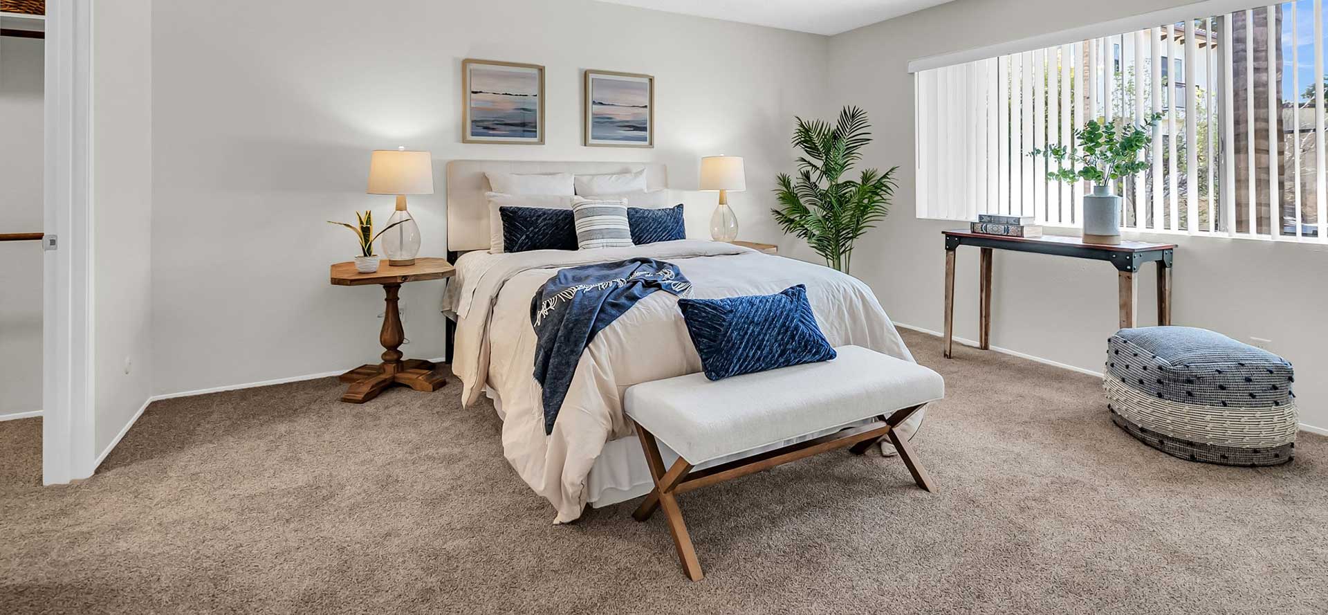 Available in one and two bedroom, and two bedroom plus den. Features in some apartments include sunken living rooms and cathedral ceilings. Common space includes two swimming pools and jacuzzi area set in a lovely landscaped setting. Appliances include range, dishwasher and central air conditioning. All apartments feature walk-in closets.